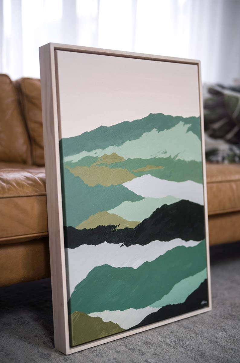 She also allocates time for a number of commissions each season. To create artwork which is personalised for a unique space is a wonderful experience. These pieces can be created to custom dimensions and use a colour palette which complements the space. Inspiration often comes from the outdoors, the surrounding landscapes, ocean views, local flora and fauna.
